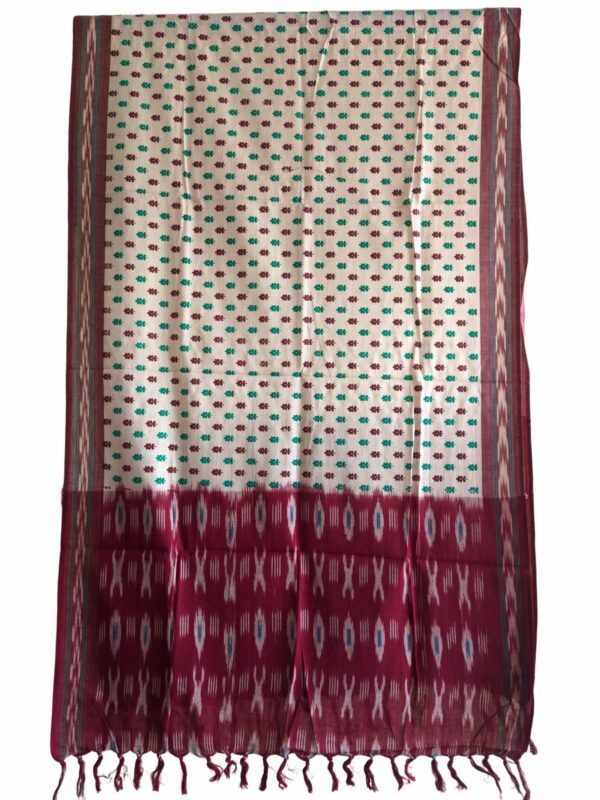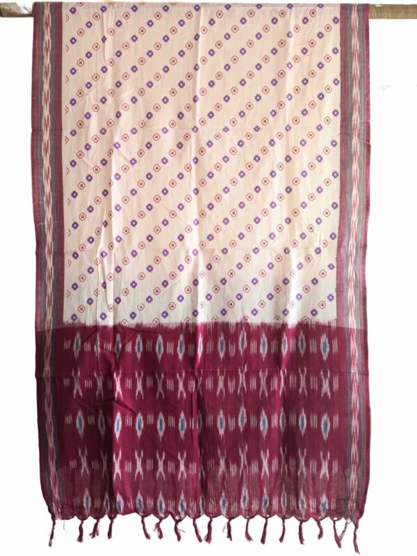 Introducing the exquisite Ikat Handloom Cotton Dupatta from PAVANKUMARWEAVES, a masterpiece of traditional craftsmanship. Measuring 2.5 meters in length, this