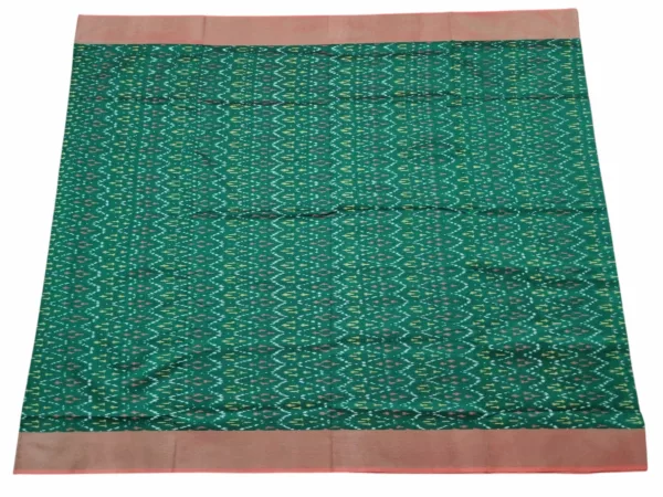 Theliya Rumal Saree in green & Black – Handwoven Double Ikat Cotton Saree with Blouse, 6.2 Meters