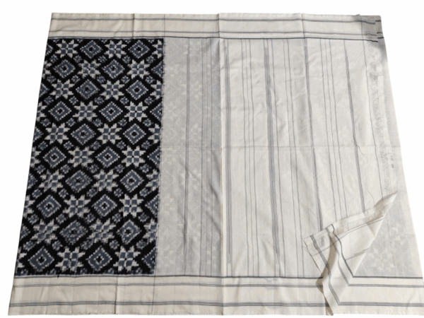 Black And white Theliya Rumal Saree with Blouse – 6.2 Meters of Heritage Elegance