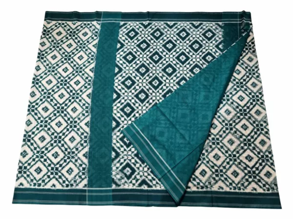 Theliya Rumal Saree in green & Black – Handwoven Double Ikat Cotton Saree with Blouse, 6.2 Meters
