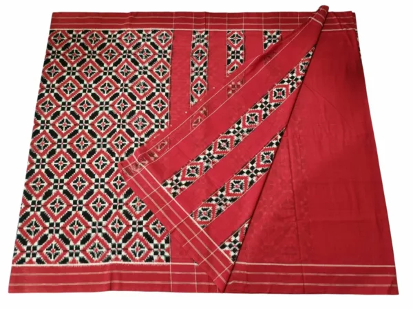 Theliya Rumal Saree in Red & Black – Handwoven Double Ikat Cotton Saree with Blouse, 6.2 Meters