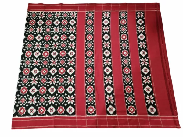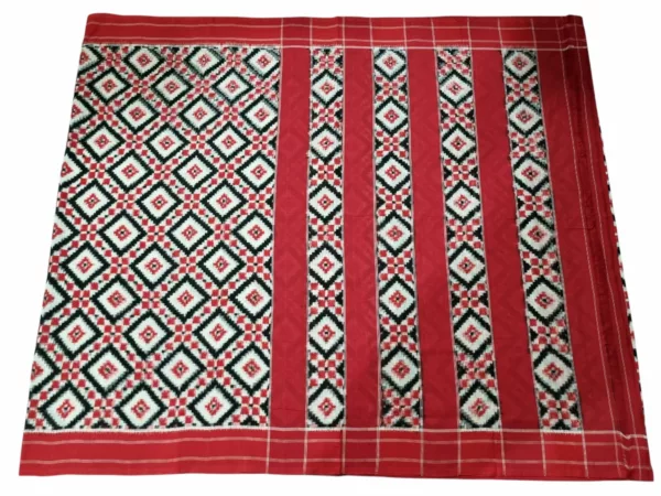 Theliya Rumal Saree in Red & Black – Handwoven Double Ikat Cotton Saree with Blouse, 6.2 Meters