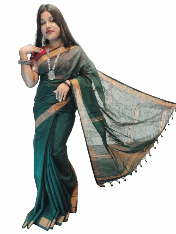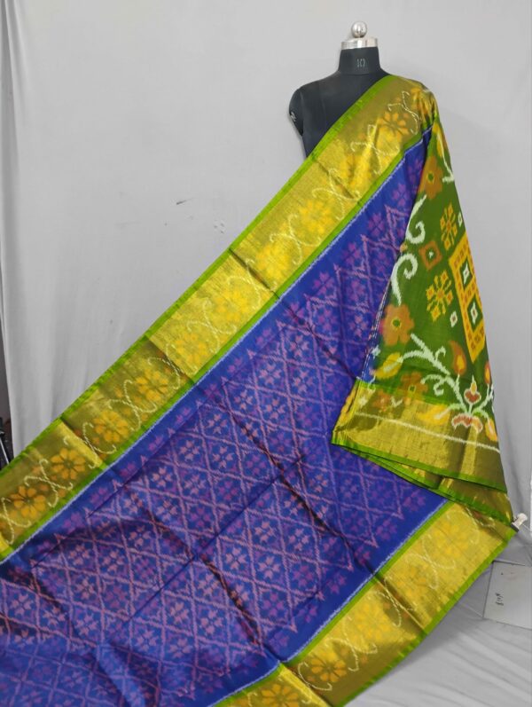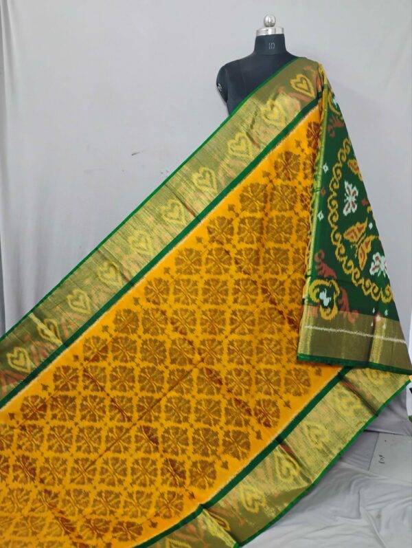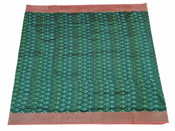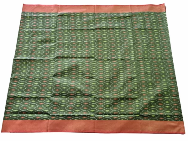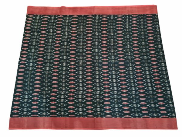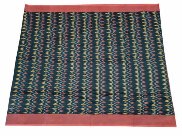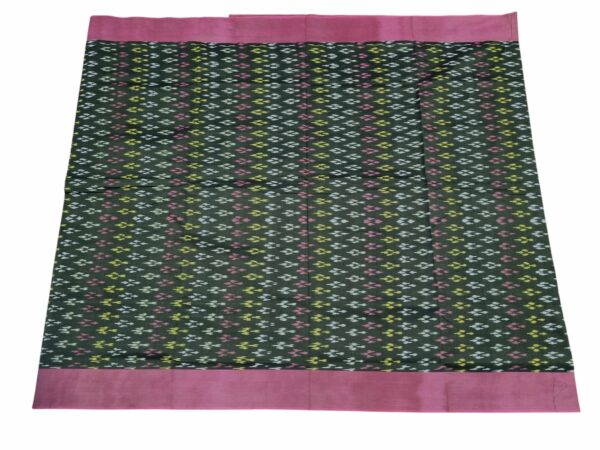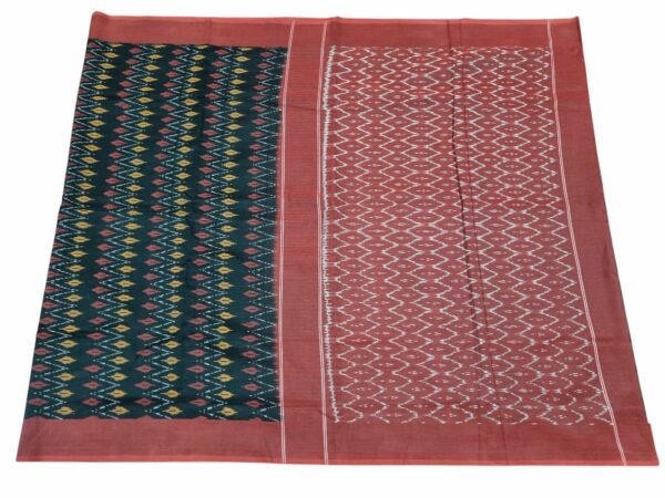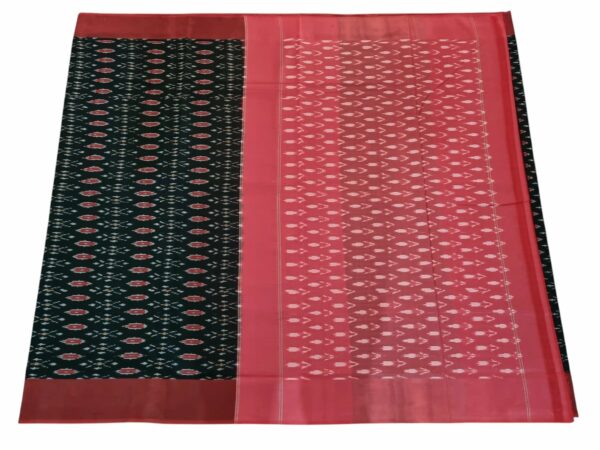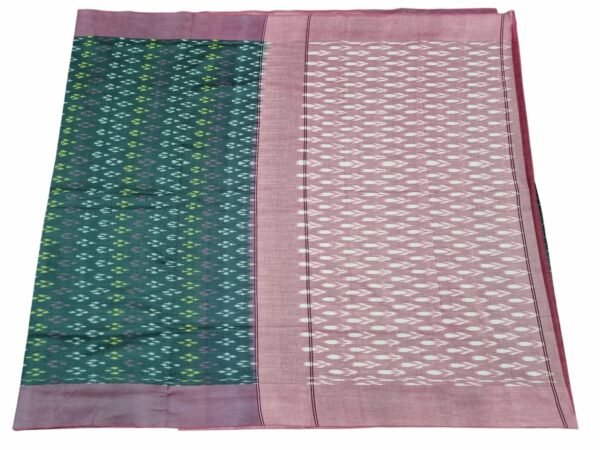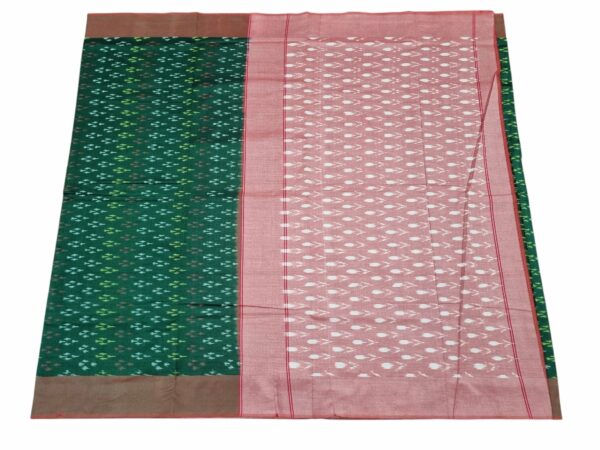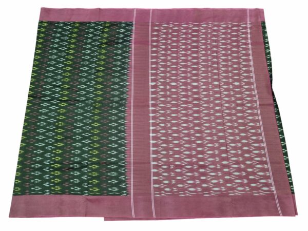 Theliya Rumal Saree in green & Black – Handwoven Double Ikat Cotton Saree with Blouse, 6.2 Meters