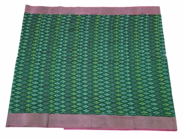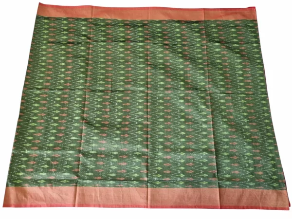 Handwoven Pure Cotton Ikat Saree with Blouse – Green & Multicolor Tie-Dye Pattern