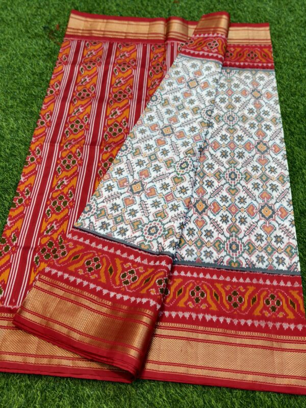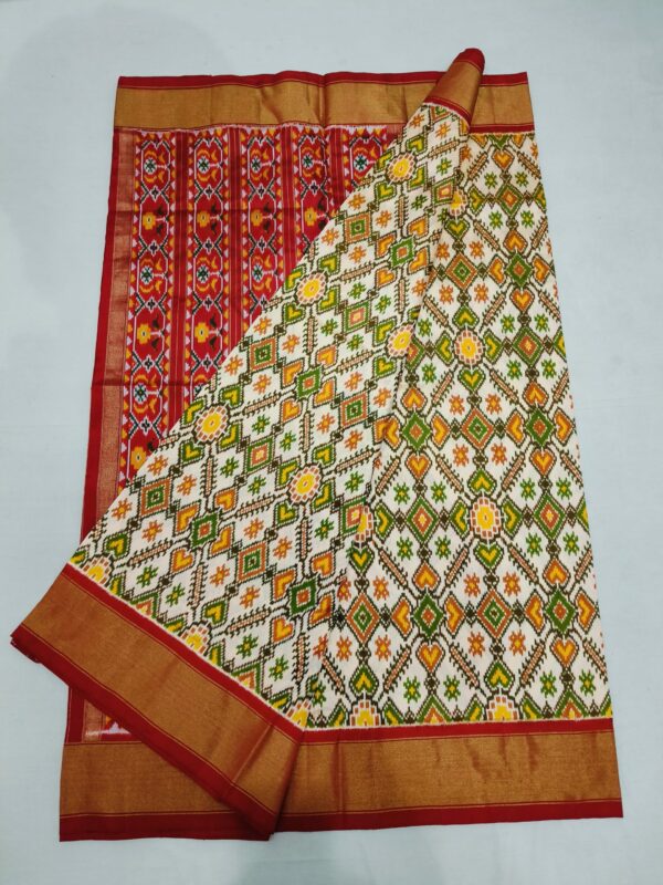 Elegant White Pochampally Silk Saree with Red Ikat Border and Blouse