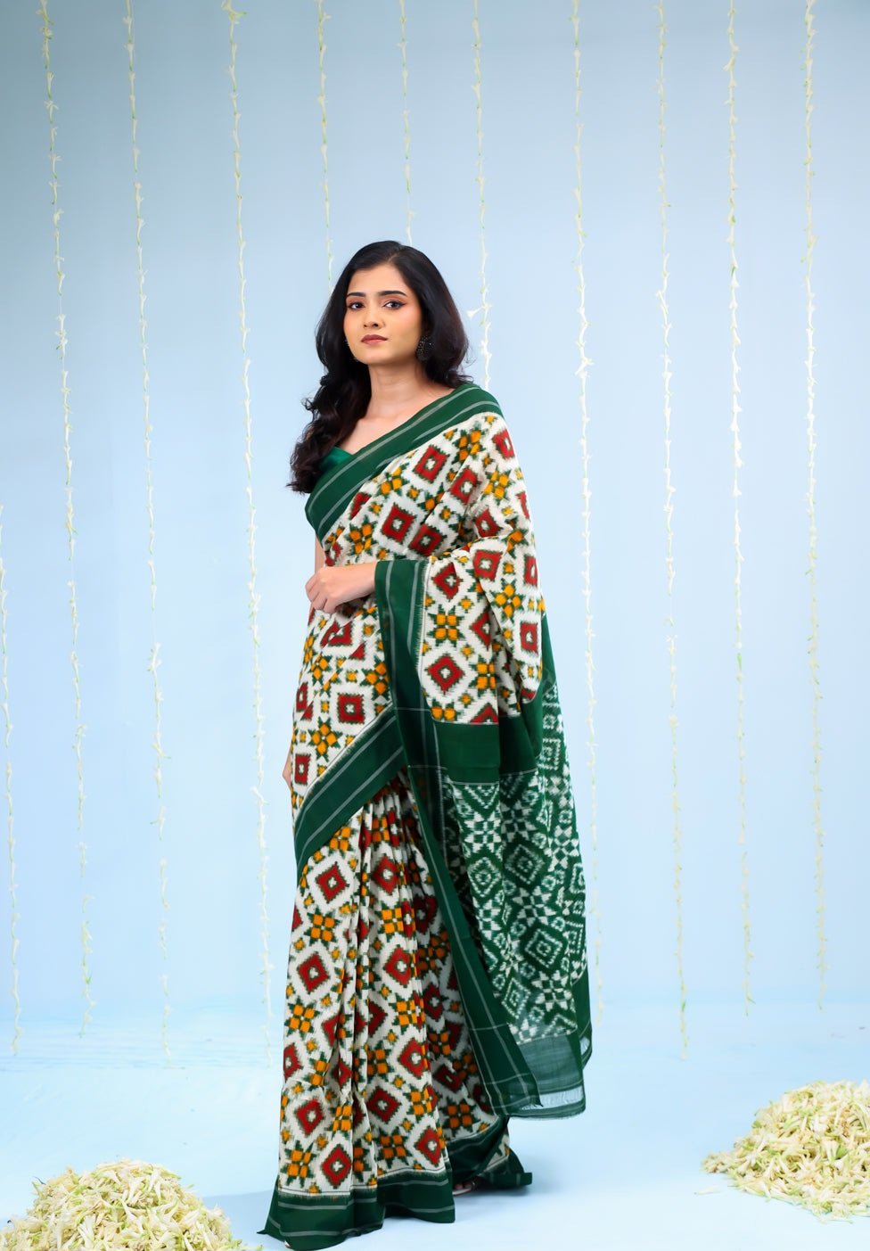 Authentic Double Ikat Teliya Saree with Blouse – 6.2 Meters of Timeless Elegance
