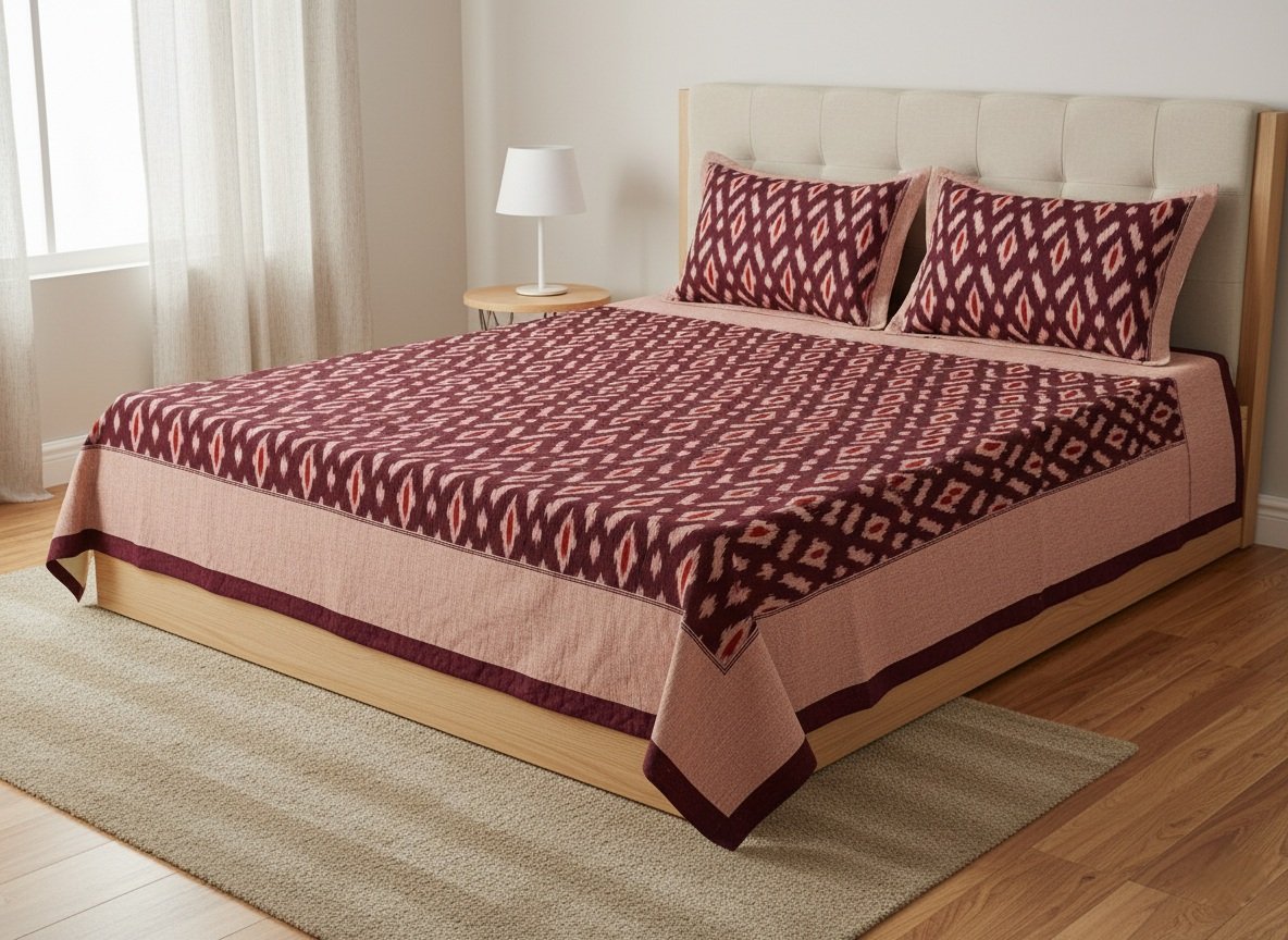 Authentic Pochampally Ikat Bedsheet – King Size 9×7 ft with 2 Pillow Covers | Handwoven