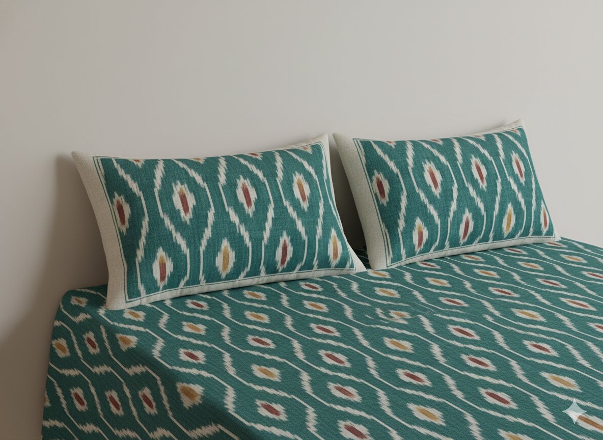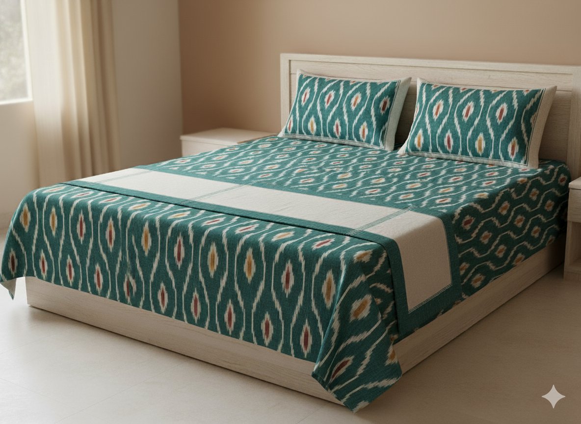 Authentic Pochampally Ikat Bedsheet – King Size 9×7 ft with 2 Pillow Covers | Handwoven