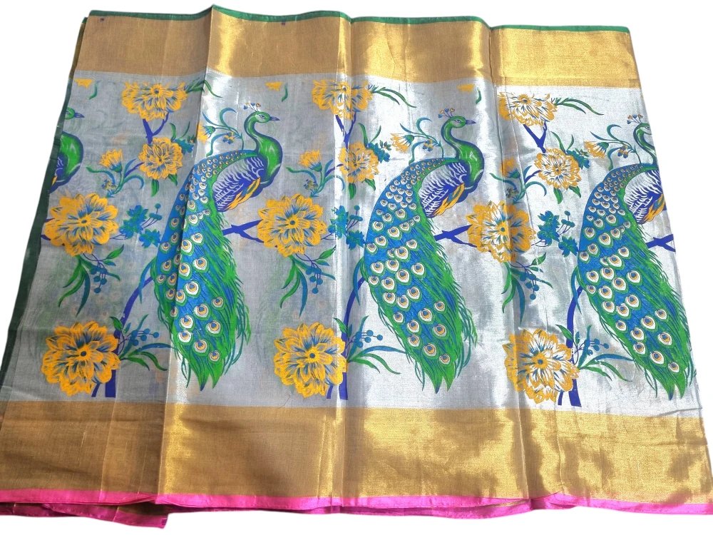 Elegant Zari Saree with Peacock and Floral Print