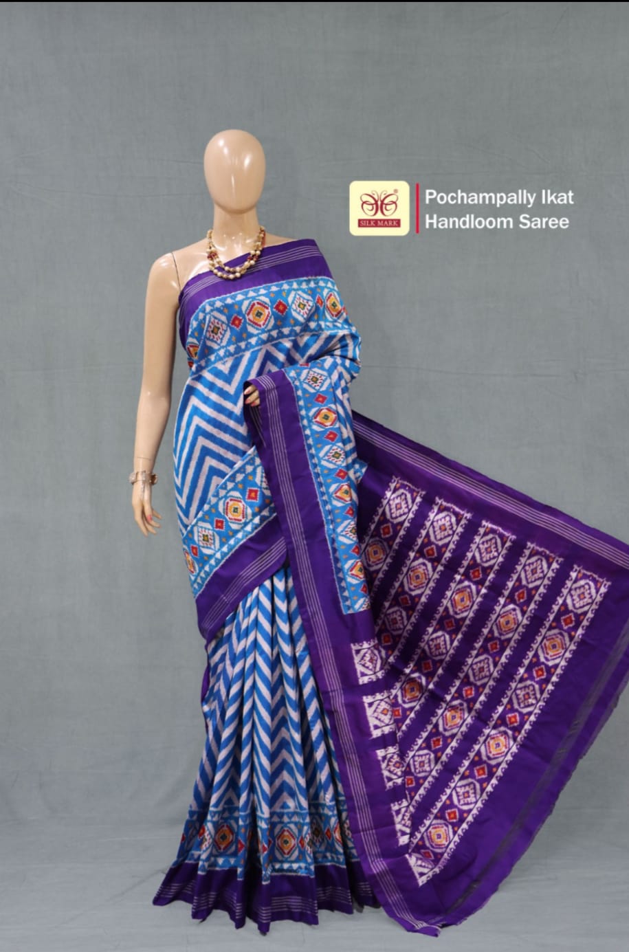Elegant Pochampally Saree with Blouse – Timeless Ikat Tradition