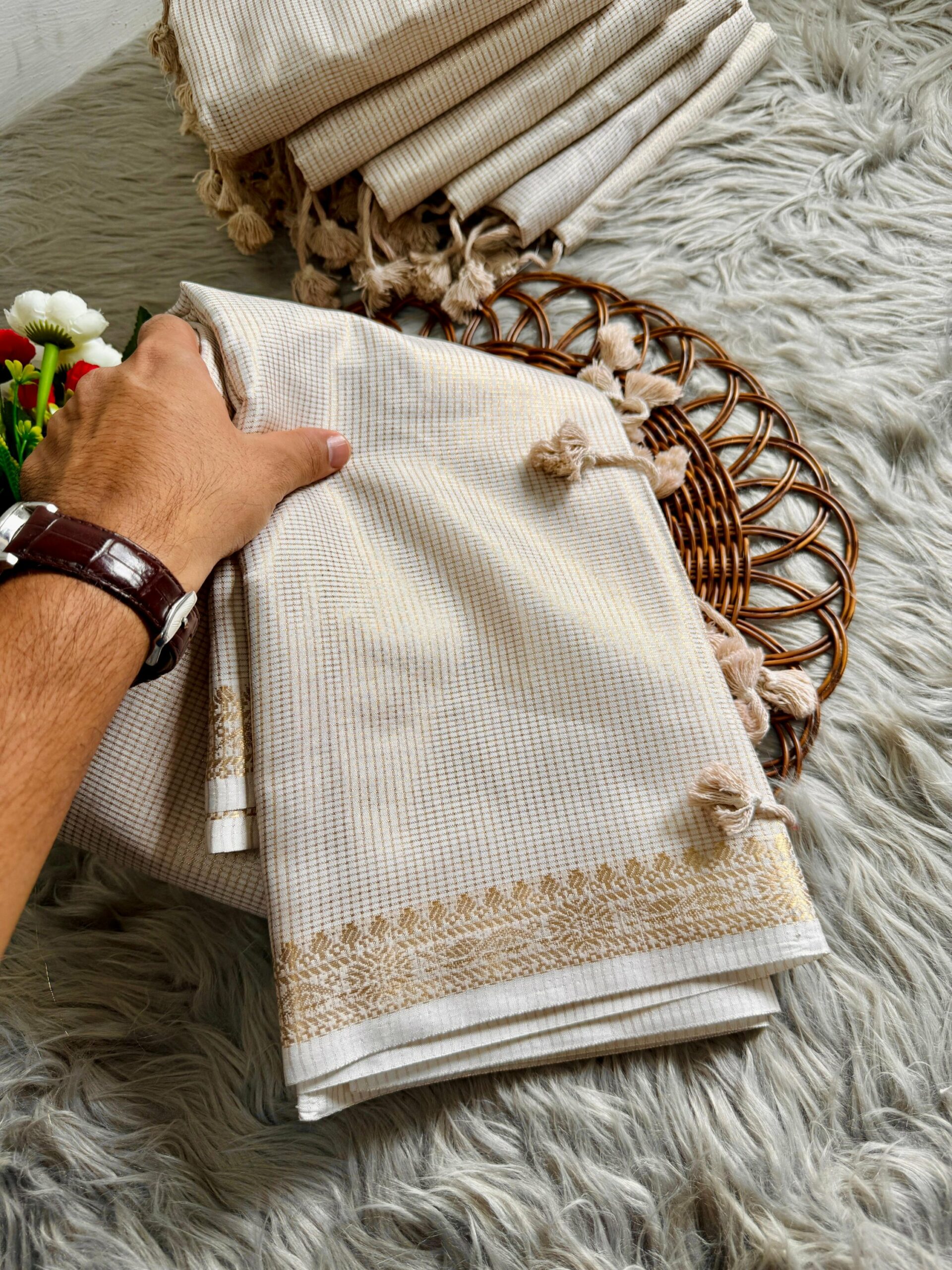 Celebrate the spirit of Onam in timeless elegance with our specially curated Kasavu sarees. Each piece is a blend of tradition and charm, adorned with designer latkans, rich golden zari borders, and classic weaving that reflects Keralaโs cultural heritage. Lightweight and festive, these sarees are perfect for your Onam celebrations โ whether it’s for family gatherings, cultural events, or festive photoshoots.