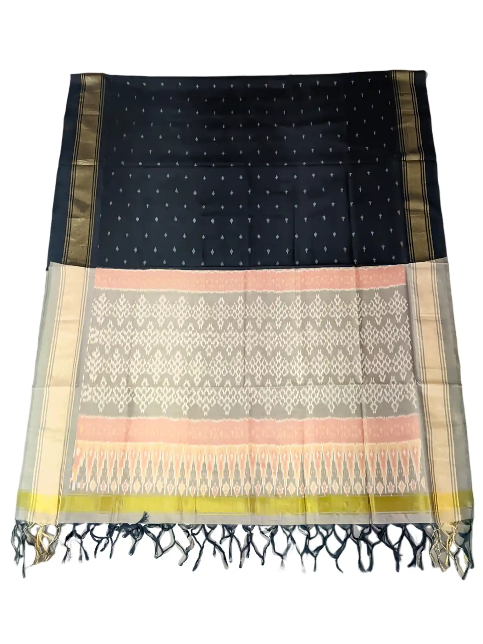 The hallmark of this dupatta is its intricate ikat patterns, a distinctive feature of Pochampally textiles. These patterns are created using a resist-dyeing technique, resulting in unique designs that are both timeless and contemporary.