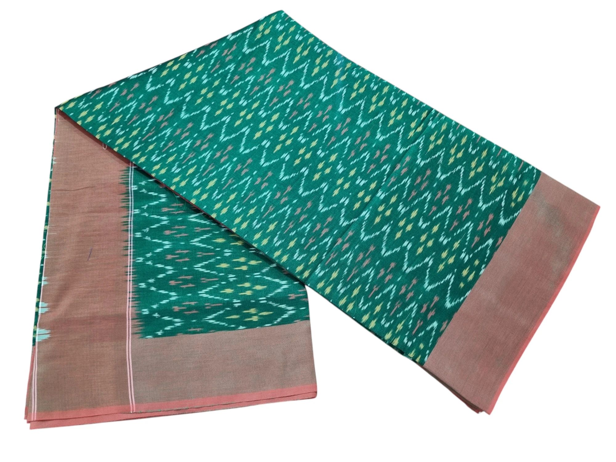 Experience authentic Telangana heritage with this Handloom Pochampally Saree. Crafted near Koyalagudem from premium mercerised cotton, it perfectly blends traditional Ikat artistry with a modern, silky lustre for unmatched elegance and comfort.