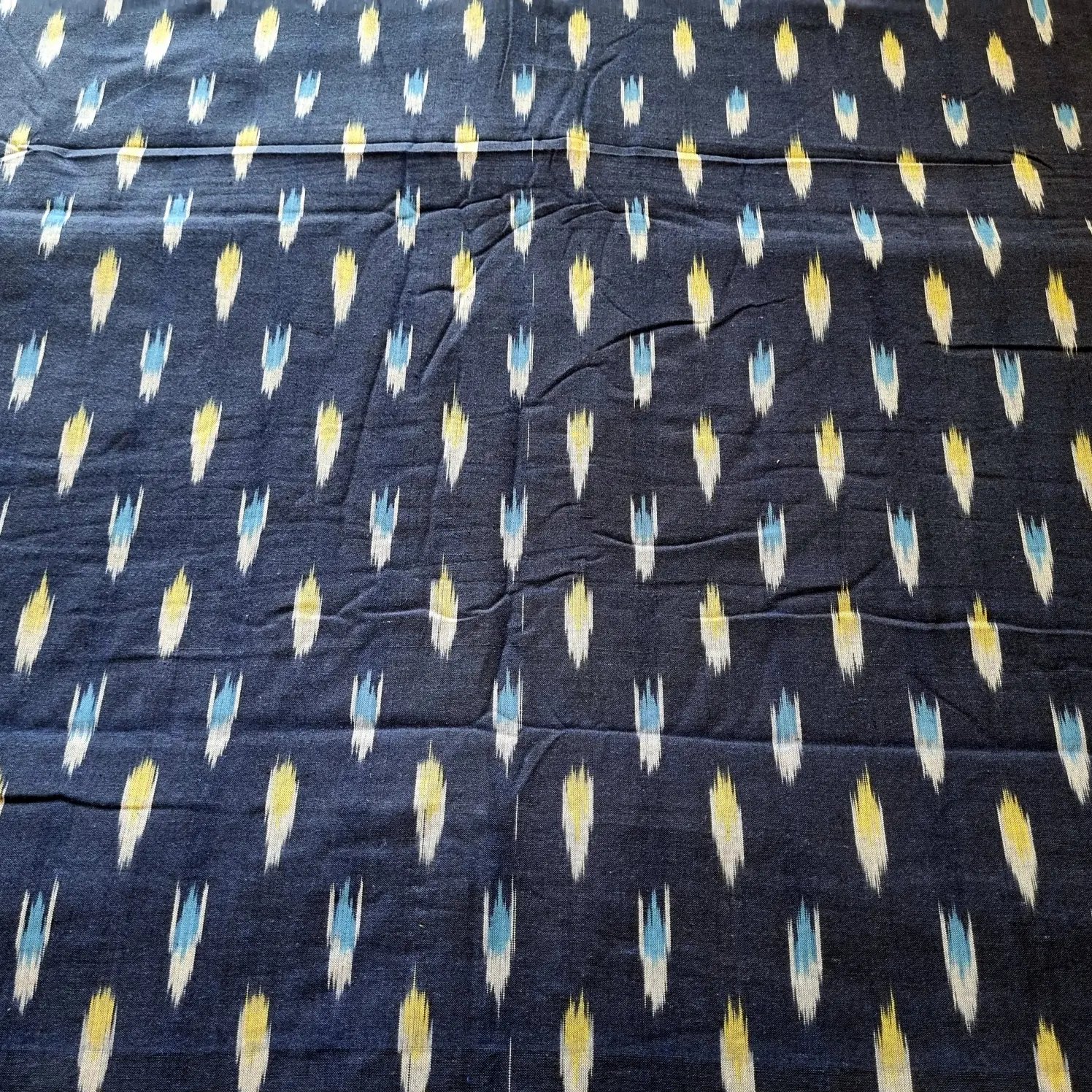 Bring traditional charm to your creations with our handwoven ikat cotton fabric, crafted with care by skilled artisans from India. This premium cotton fabric is made using the age-old tie and dye technique, resulting in a vibrant ikat pattern that is both elegant and durable.