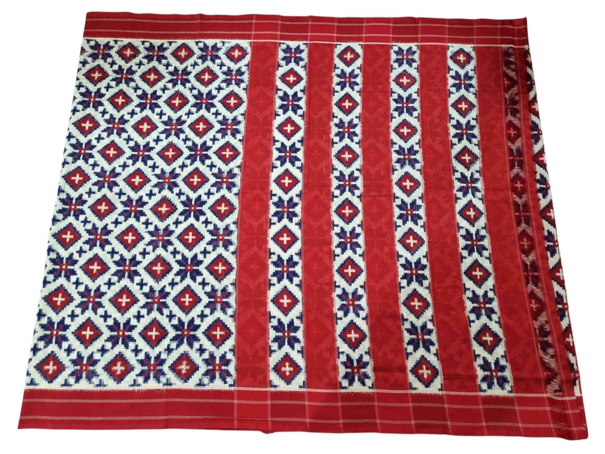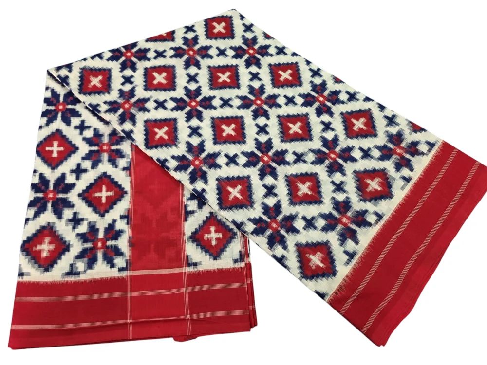 Experience the charm of tradition and craftsmanship with our Pure Cotton Pochampally Saree featuring a woven Double Ikat Teliya Design. Handwoven by skilled artisans in Pochampally, this saree reflects the rich heritage of Indian handloom artistry. Crafted from 100% pure cotton, it offers exceptional comfort, breathability, and elegance — perfect for everyday wear or special occasions.