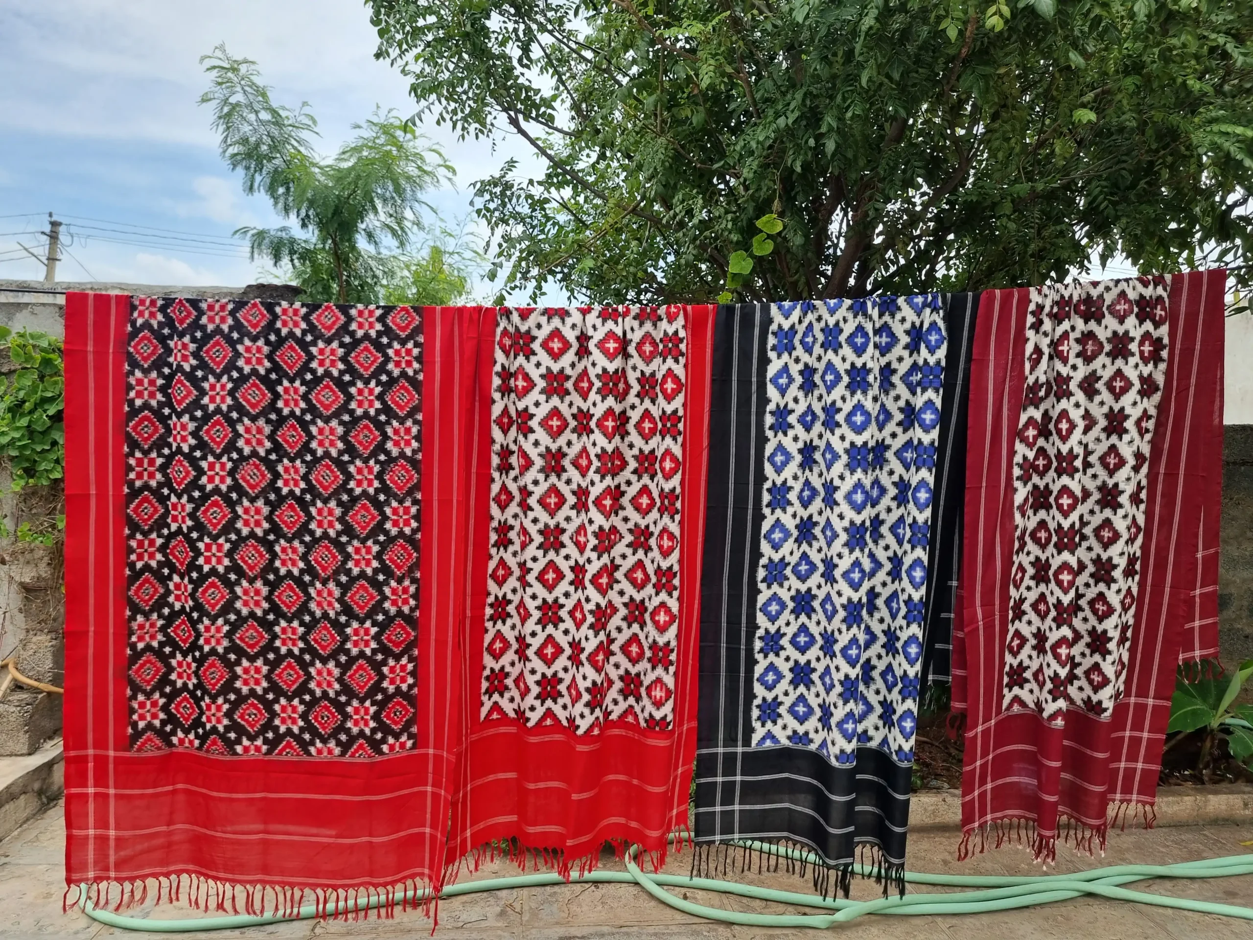 Introducing the exquisite Theliya Rumal Dupatta from PAVANKUMARWEAVES, a true embodiment of traditional craftsmanship. This handwoven masterpiece captures the essence of intricate ikat weaving, reflecting the rich cultural heritage of India. With a length of 2.5 meters, it offers versatile styling options, making it the perfect accessory to elevate any ethnic outfit.