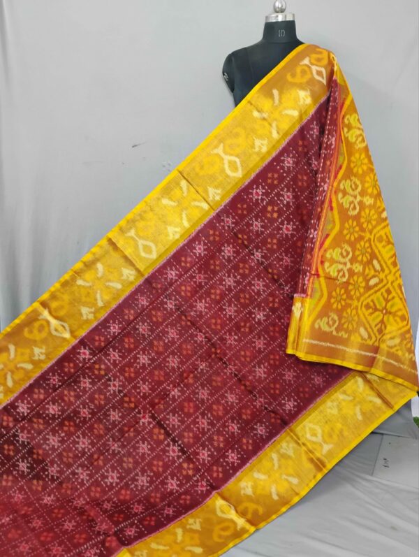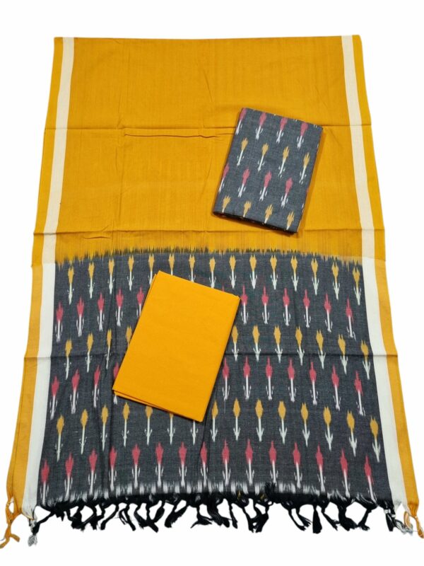 Introducing the exquisite Ikat Handloom Cotton Dupatta from PAVANKUMARWEAVES, a masterpiece of traditional craftsmanship. Measuring 2.5 meters in length, this