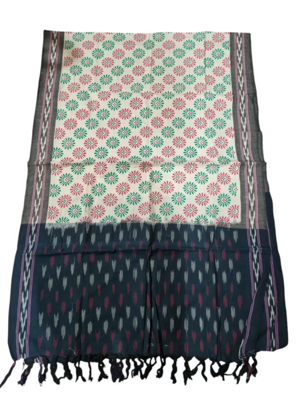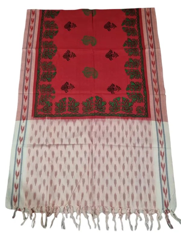 Introducing the exquisite Ikat Handloom Cotton Dupatta from PAVANKUMARWEAVES, a masterpiece of traditional craftsmanship. Measuring 2.5 meters in length, this